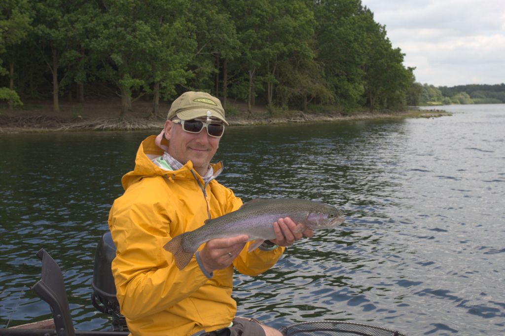 A Draycote Rainbow, ‘fooled’ by a size 14 Biscuit FAB, but would it have taken a bigger and brighter fly?